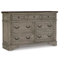 素朴なグレー仕上げの7段引き出し付き木製+鉄製サイドボード、クラシックな彫刻が施された収納家具、リビングルーム、ダイニングルーム、キッチン、寝室、ホテルに最適