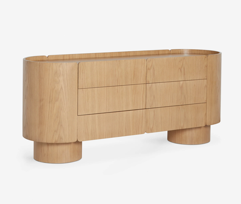 Commode moderne du milieu du siècle avec 6 tiroirs en bois de chêne pour chambre à coucher